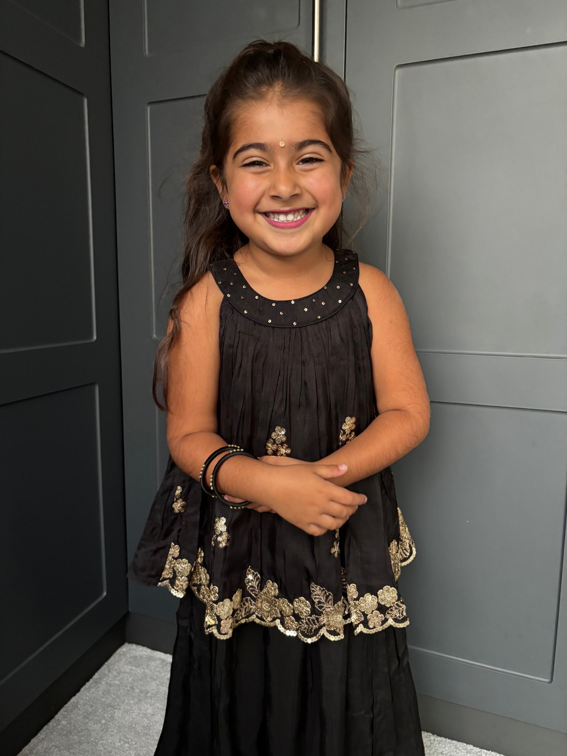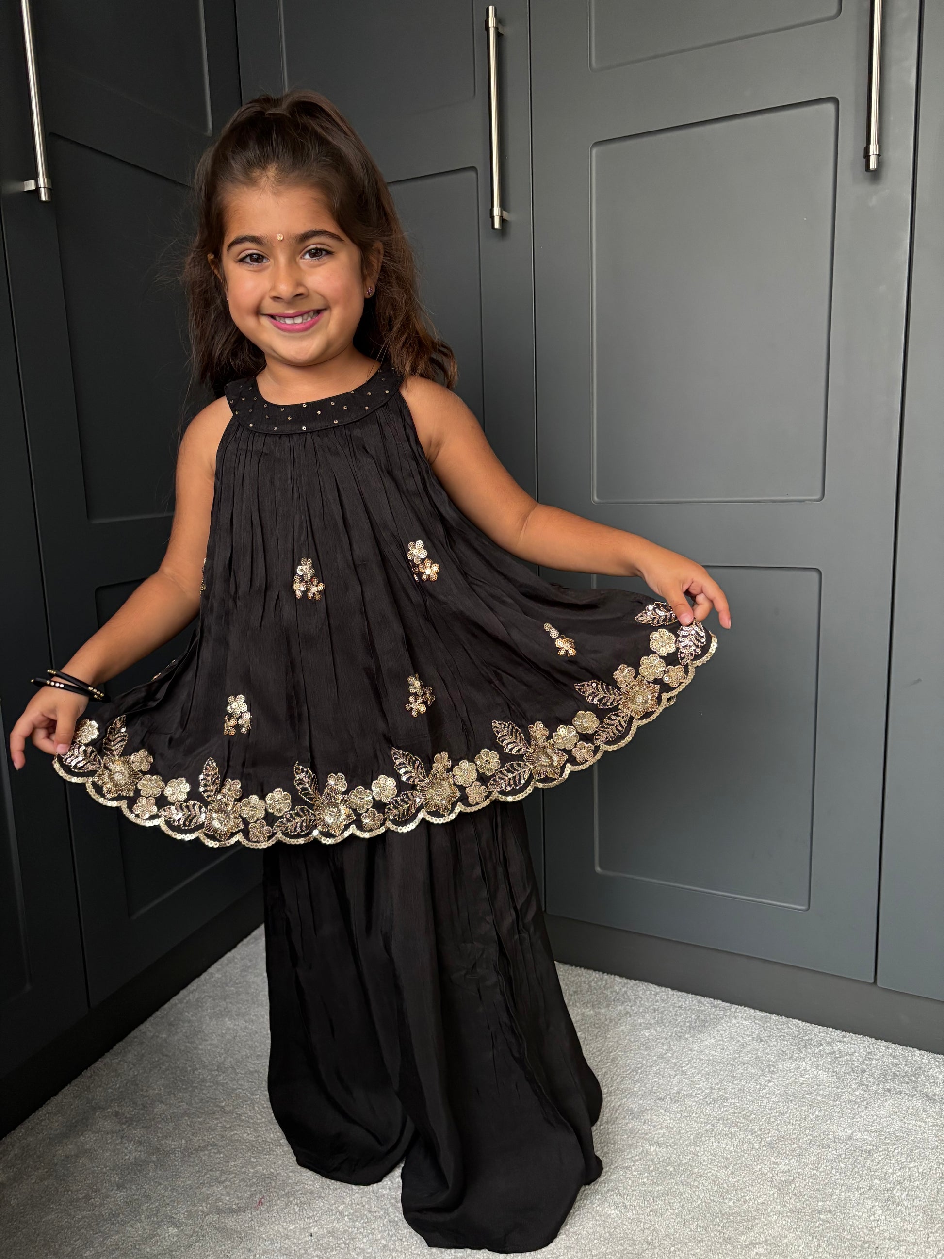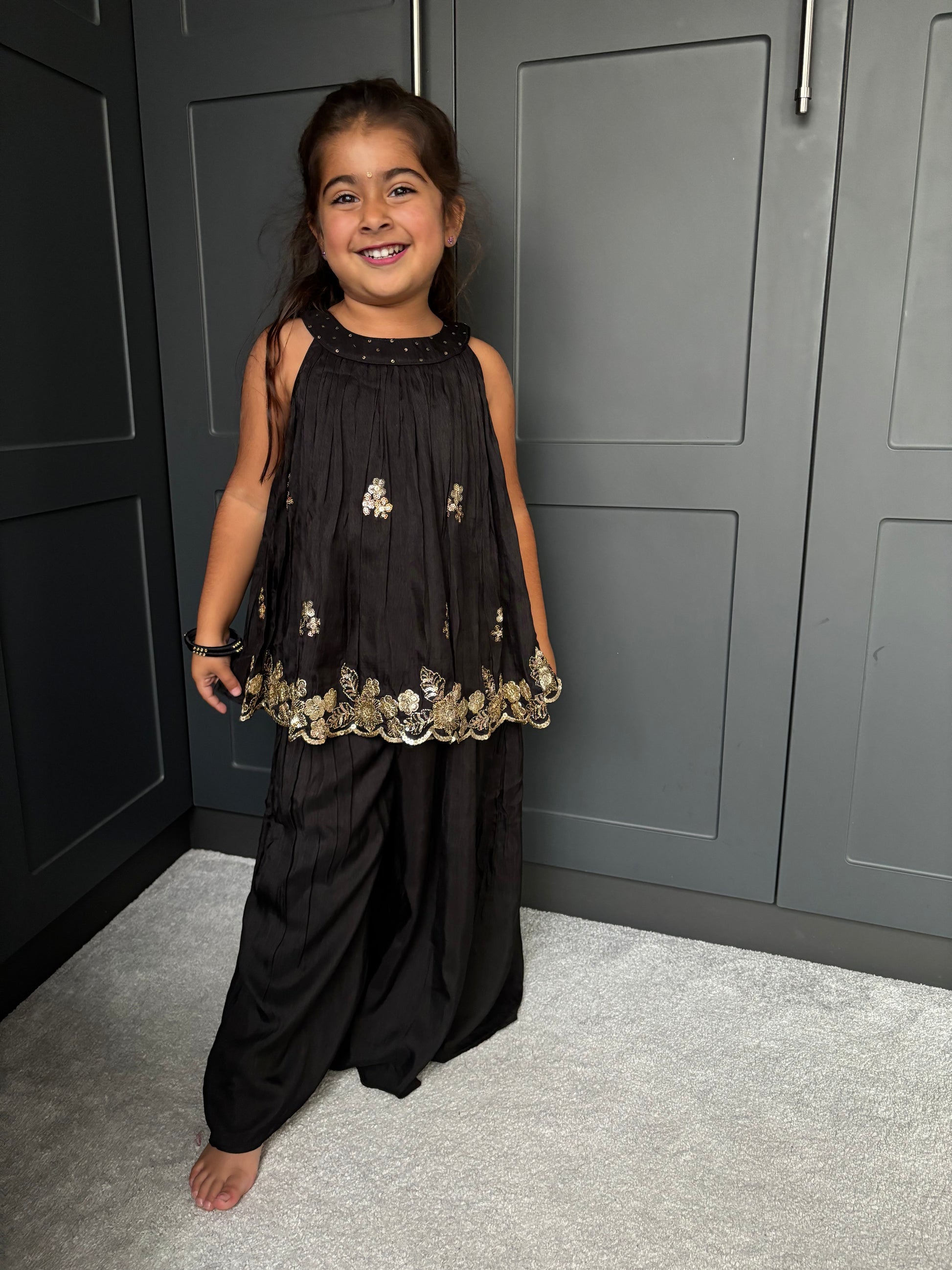 We’re absolutely smitten with this adorable black palazzo suit for our little girls! 🖤