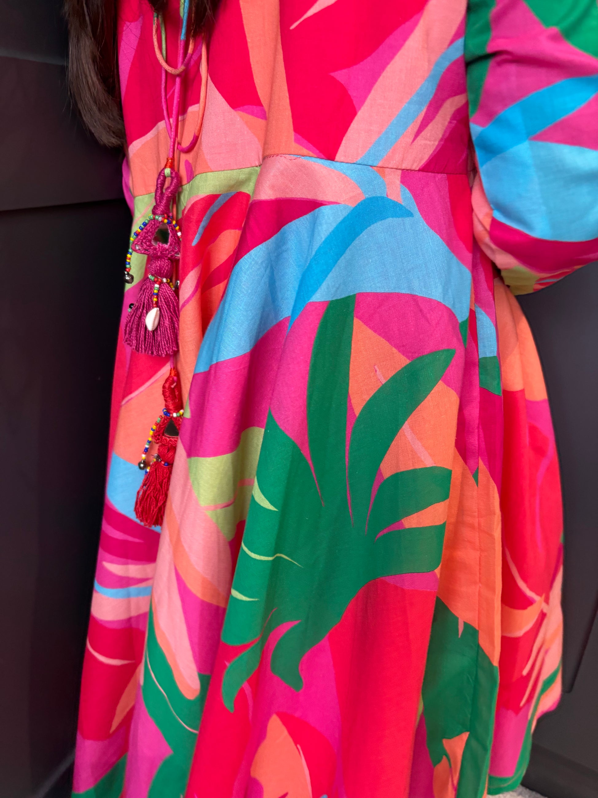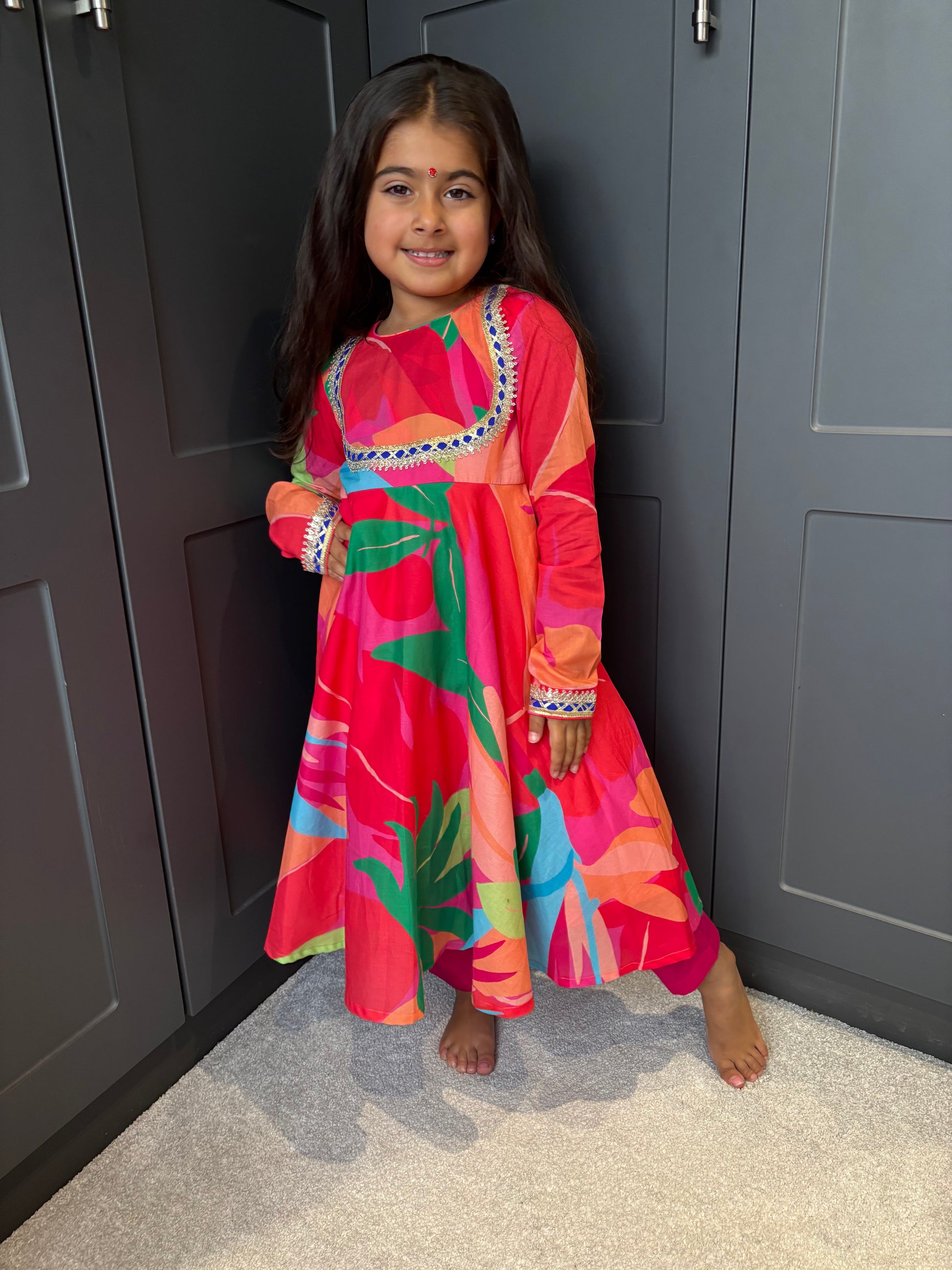 Made from our signature buttery-soft cotton, this vibrant Anarkali radiates elegance and joy. It features long fitted sleeves, a graceful neckline, and a delicate doriya tie detail at the back. Falling beautifully to the ankle, it pairs effortlessly with straight trousers for a timeless festive look.